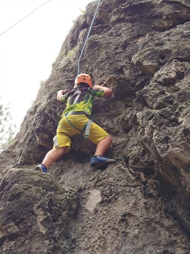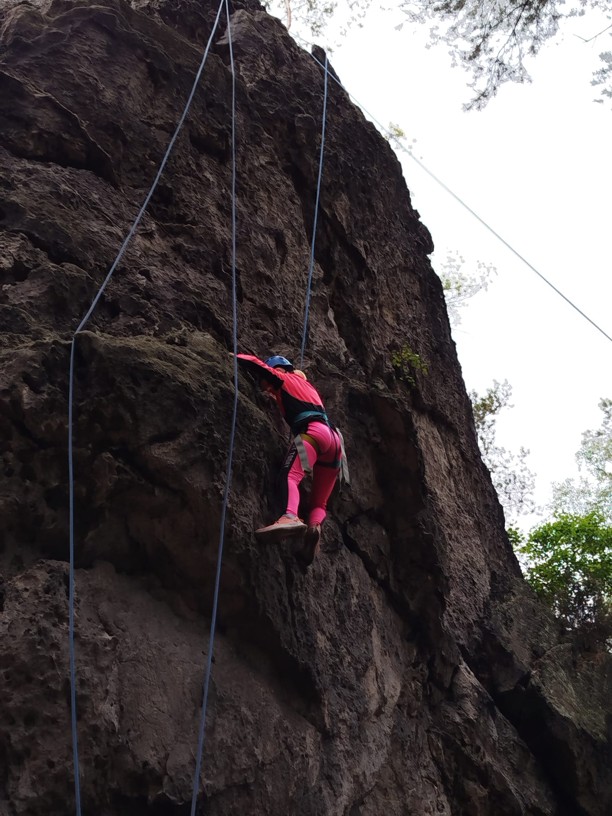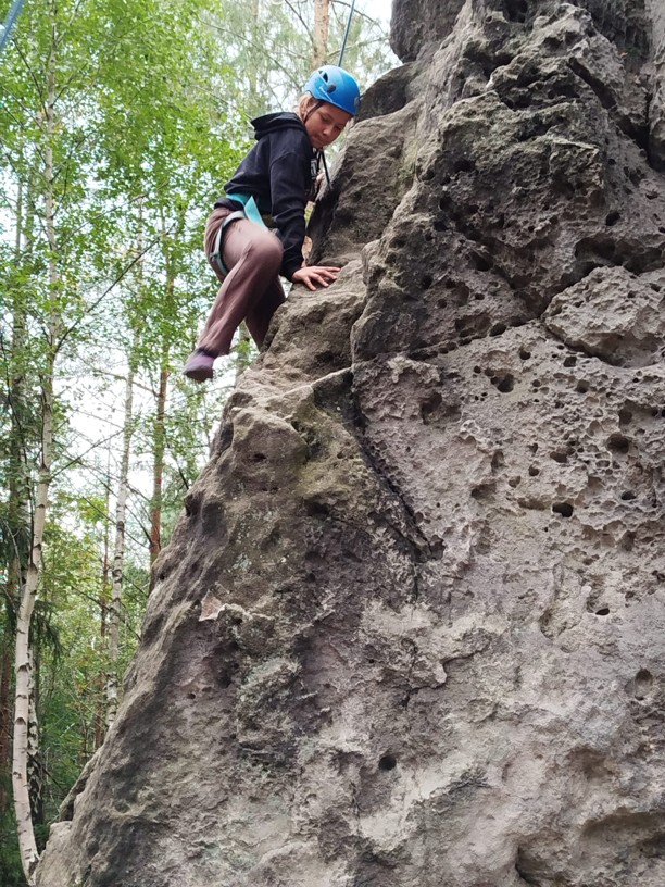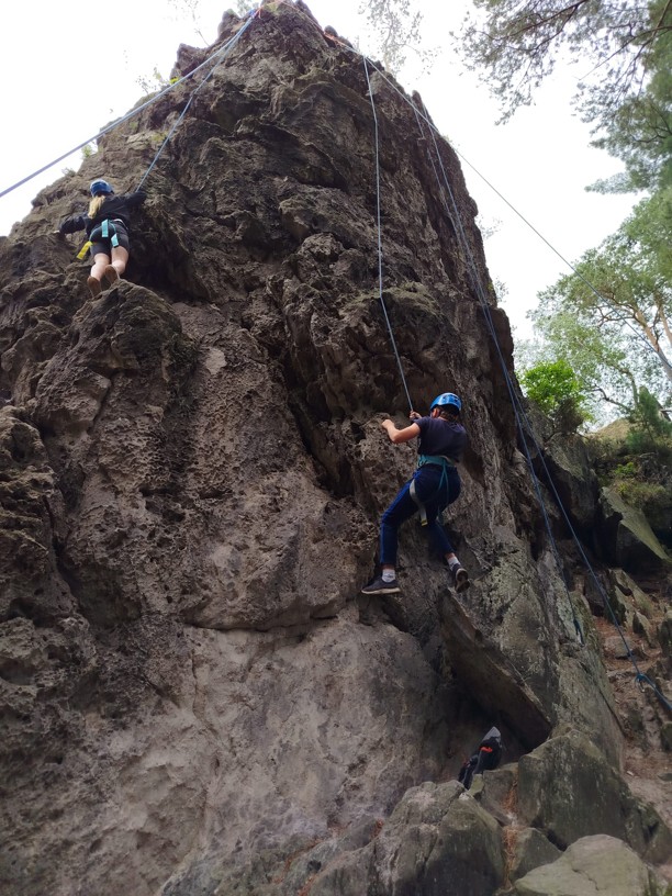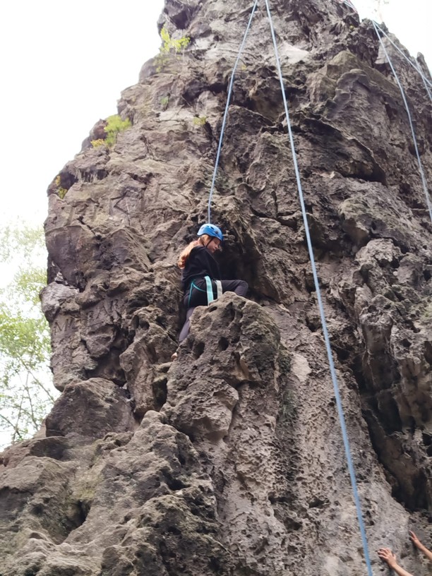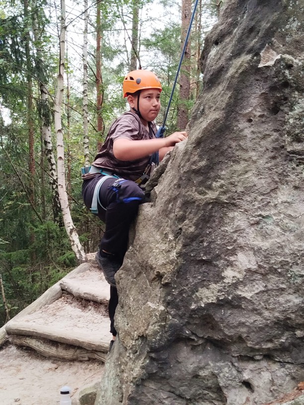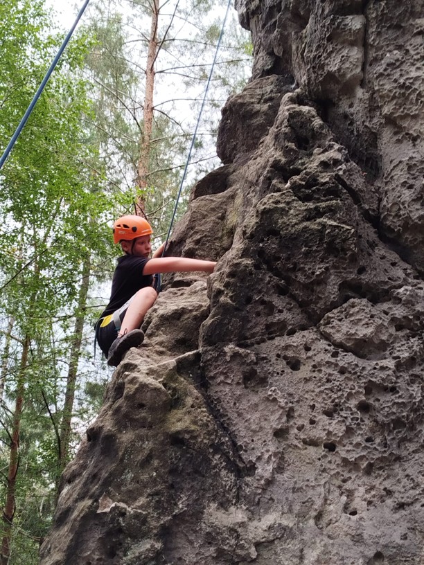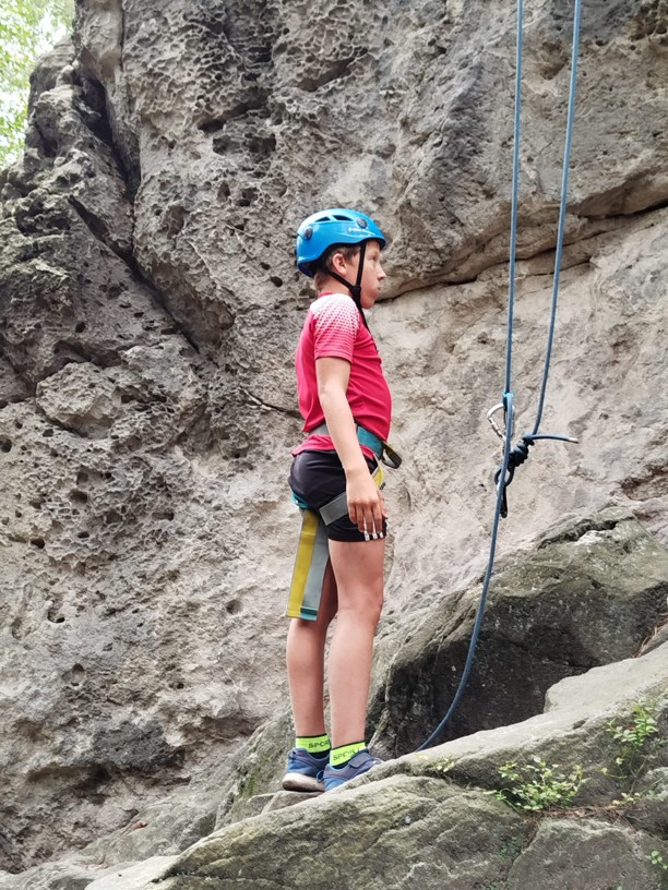 Ve středu jsme vyrazili pěšky na hrad Frýdštejn, kde jsme si dali oběd a užili si krásný výhled. Odpoledne následoval jeden z vrcholů kurzu – skalní lezení a slaňování na Pantheonu. Pro mnohé to byl nezapomenutelný zážitek a příležitost překonat sám sebe. Večer jsme se vrátili k práci na erbu, který jsme společně dokončili.