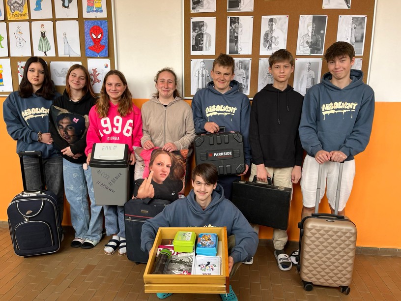 Žáci dostali jednoduchý úkol: nepřinést si školní pomůcky v klasické aktovce či batohu. A jak se ukázalo, fantazii se meze opravdu nekladou! Chodby i třídy se během rána proměnily v přehlídku originálních „zavazadel“. Viděli jsme nejrůznější bedýnky, proutěné i odpadkové koše, lavory, hrnce na prádlo, podběráky, obaly na kytary a další hudební nástroje. Nechyběly ani kufry všeho druhu – kancelářské, kosmetické, cestovní i ty na nářadí. Školní pomůcky se dokonce podařilo přivézt v nákupním košíku či na dětském odrážedle. Každý si s netradičním úkolem poradil po svém a výsledkem byla skvělá atmosféra, která provázela celý den.