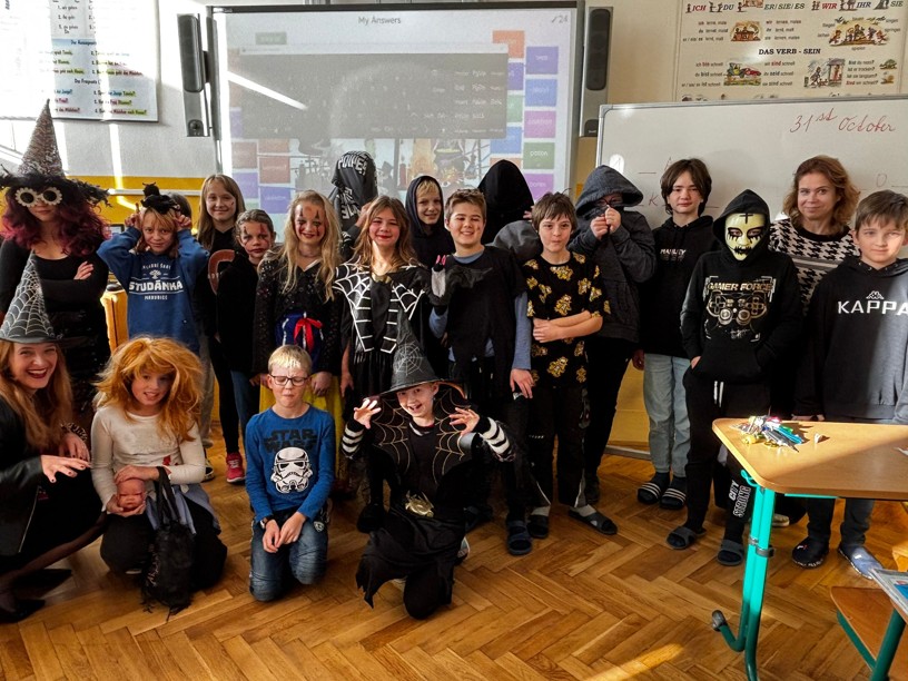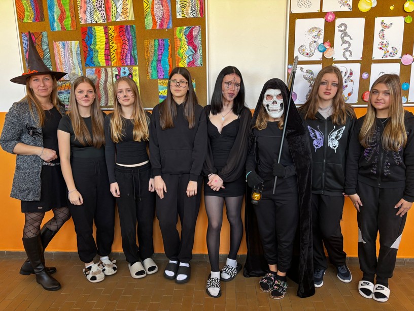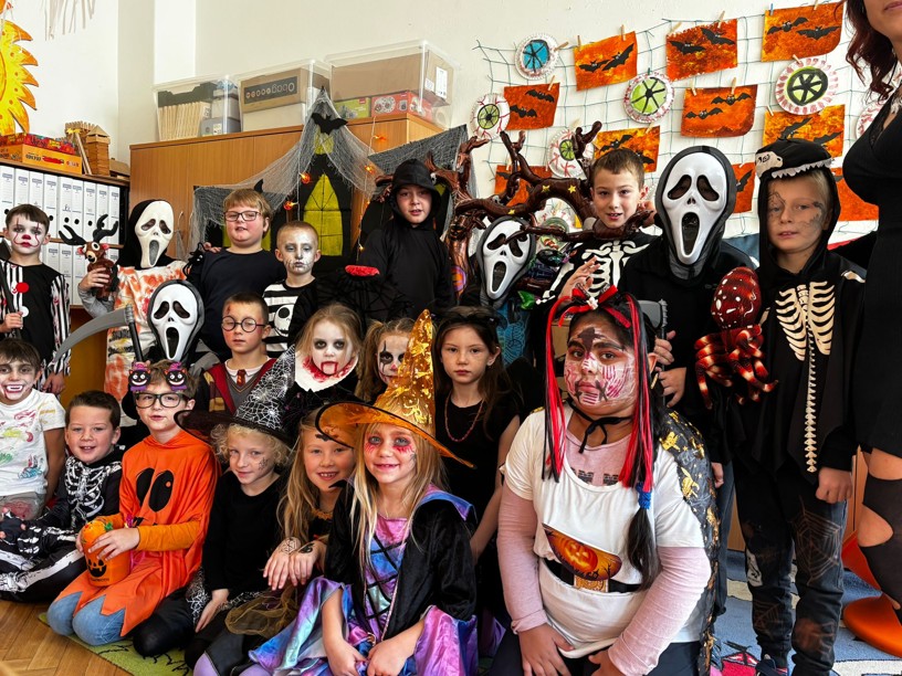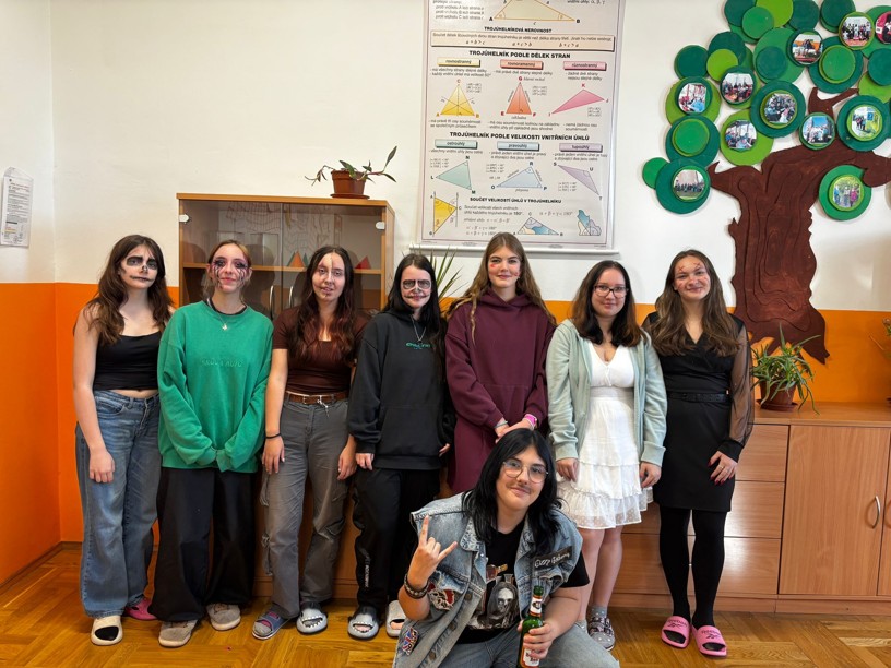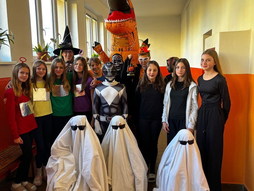 V pátek 31. října se škola proměnila ve strašidelné místo plné duchů, přízraků a nejrůznějších masek. Slavili jsme totiž Halloween! Třídy i chodby zdobily tajemné motivy – nechyběli pavouci, dýně ani netopýři. Žáci dorazili v nápaditých a pečlivě propracovaných kostýmech, které si zaslouží velkou pochvalu.