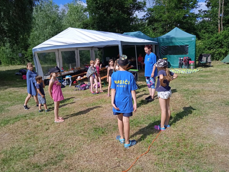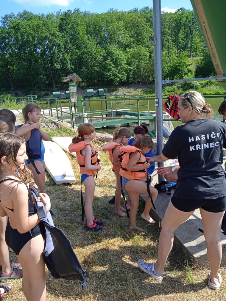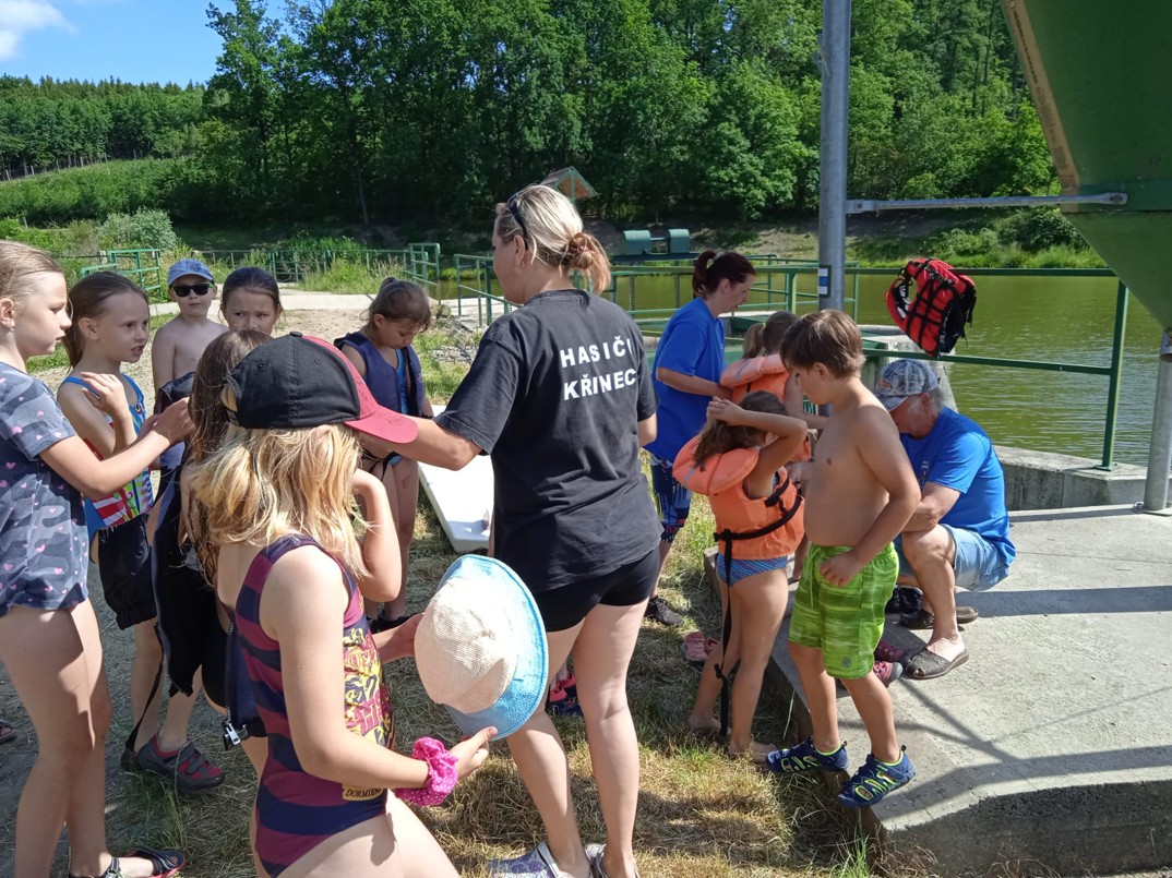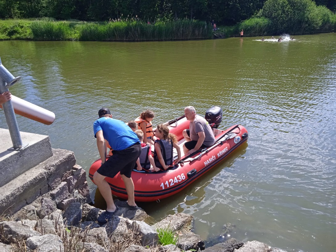 Ve dnech 16. a 17. června se děti z prvního stupně vydaly ke Komárovskému rybníku, kde si pro ně křinečtí hasiči připravili program. Ve čtvrtek šli žáci čtvrté a páté třídy. V pátek vyrazili první, druhá a třetí třída. U rybníku již bylo připraveno celkem šest stanovišť. Děti se rozdělily do skupin a plnily jednotlivé úkoly, například chůzi po laně, jízdu na motorovém člunu, stříkání hasičskou hadicí, jízdu ve vojenském jeepu. Novinkou letos byla mokrá skluzavka, kterou si děti v parném dni náramně užívaly. Jako překvapení si pro nás hasiči připravili záchranu tonoucího. Páteční skupina měla to štěstí, že viděla záchranu tonoucího Veverky (náš pan ředitel měl totiž tolik kuráže, že šel dělat tonoucího sám). Myslím si, že jsme všichni odjížděli plni zážitků. Křineckým hasičům patří velké díky za ochotu ve svém volném čase dělat nezištně něco pro děti.