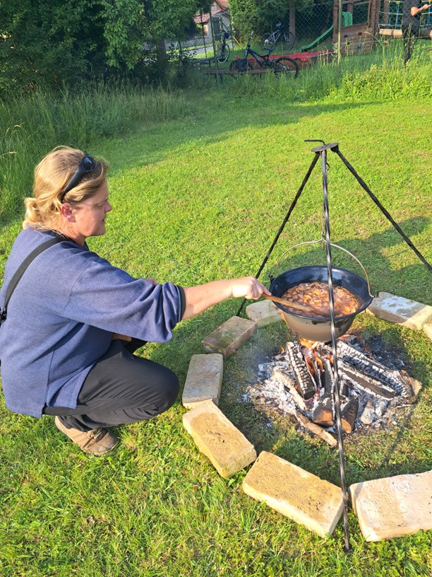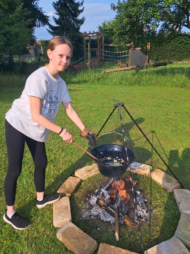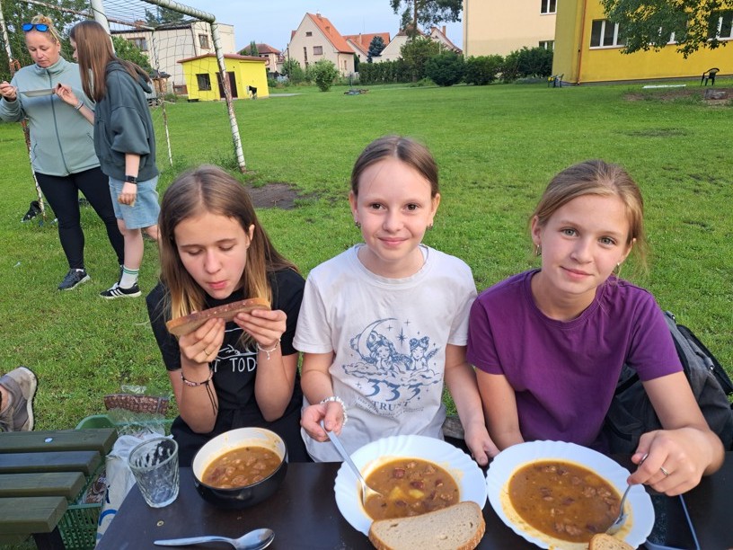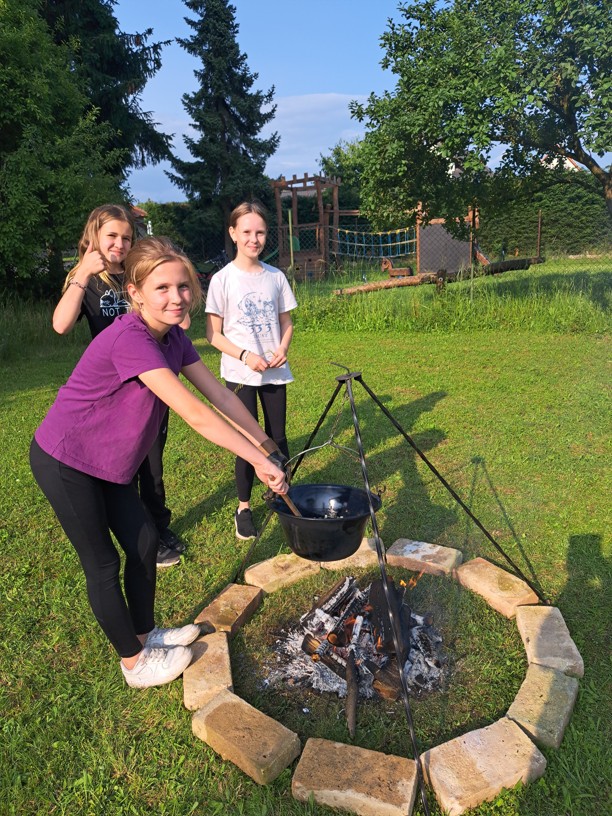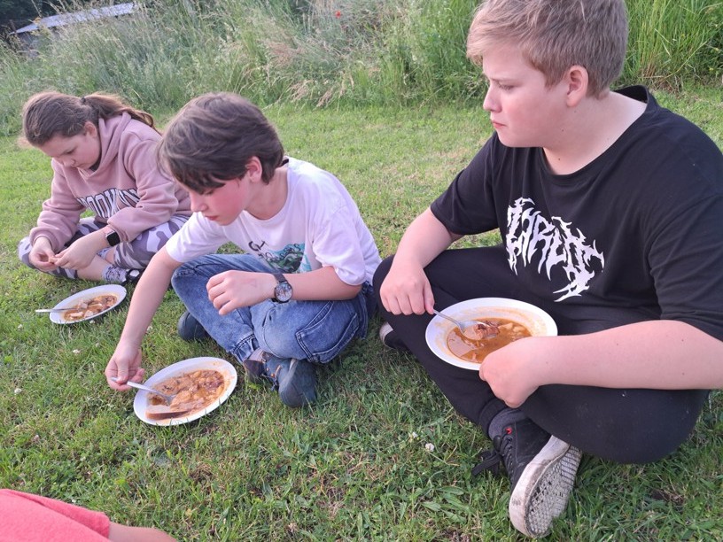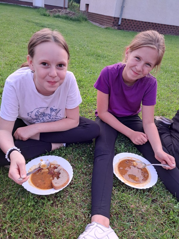 V pondělí 9.6.2025 jsme se společně rozloučili s našimi páťáky a jejich rodiči při milém odpoledni, které se neslo v duchu pohody, vzpomínek i smíchu. Každá rodina přispěla svou troškou do „kotlíku“ – doslova! Děti spolu s rodiči vařili kotlíkový guláš, který krásně provoněl celé setkání a nakonec i skvěle chutnal.